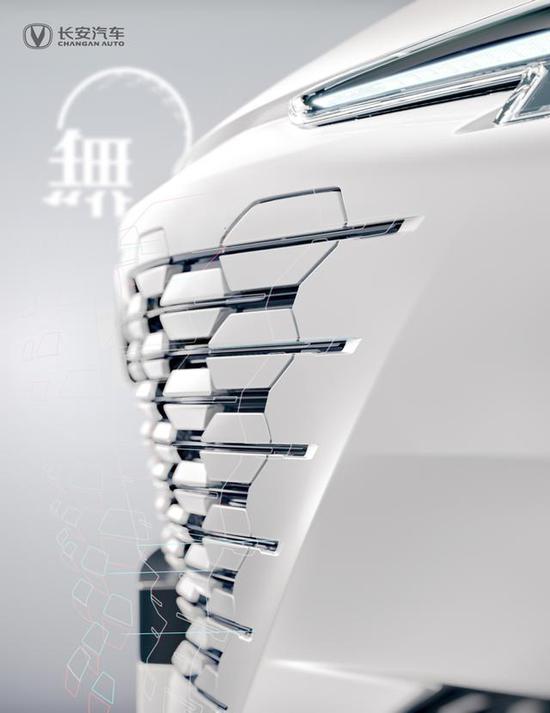 全新车型延续了无边界进气格栅设计,颠覆了汽车诞生百年来格栅形态,参数化的手法打破了元素自身固有边界,采用六边形倒角由四周向中间LOGO聚集,呈现出科技的梦幻感。这样的一个创新,未来将成为长安设计中,最硬核的超级符号。