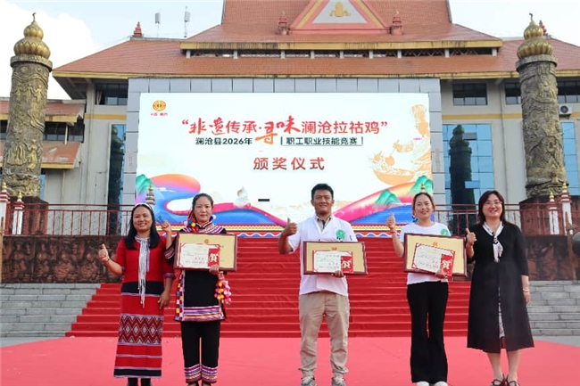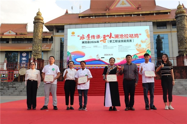 葫芦呈瑞祥,幸福满澜沧。正值2026年拉祜族葫芦节(阿朋阿龙尼)盛大举办之际,4月10日,由澜沧县总工会主办的2026年澜沧县“非遗传承·寻味澜沧拉祜鸡”职工职业技能竞赛,在县民族团结进步广场火热开赛。县委书记刘继宏出席活动并为获奖选手颁奖,县委副书记、县委统战部部长王良俊宣布竞赛开幕,县人大常委会副主任、县总工会主席李梅致辞,县四班子相关领导及各承办、协办单位负责同志参加活动。